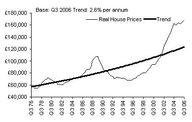 “The second half of 2006 has so far seen average monthly increases of 1.1%, almost double the 0.6% in the first half of the year and much higher than the average 0.2% per month in 2005. Looking forward, current housing market indicators are firm and do nothing to dent the prospect of further rises in house prices in the very short term. House purchase approvals increased again in October to reach their highest level since December 2003 when prices were increasing at an annual rate of 15.6%. Some cooling seemed to be in prospect when the growth of buyer enquiries fell quite sharply in September, but this pause in demand was short-lived. At the same time, stocks of properties for sale are at a two-year low leaving buyers chasing relatively few properties. With instructions still falling, there is no immediate improvement in supply conditions in sight.
